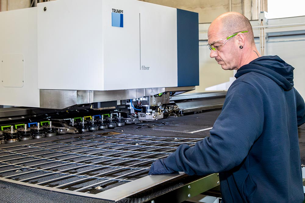 Die Fertigung von Blechen wird zunehmend komplexer. Um diesem gerecht zu werden, nutzen wir im 2D-Bereich eine Stanz-Laser-Kombimaschine TruMatic6000 von Trumpf. Der Stanzkopf bearbeitet Standardkonturen. Außenkonturen und filigrane Innenkonturen schneidet der Fiber-Laser in hoher Schnittqualität. Mit dem CO2 Flachbettlaser mit Rundachse bearbeiten wir Blechdicken bis 20 mm und Rohre.