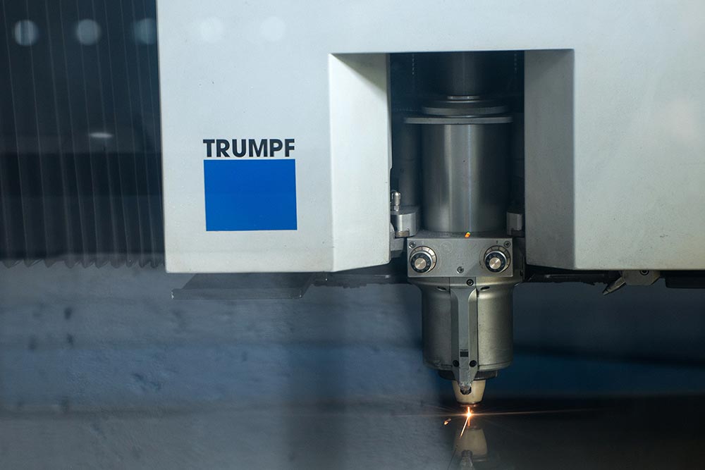 Die Fertigung von Blechen wird zunehmend komplexer. Um diesem gerecht zu werden, nutzen wir im 2D-Bereich eine Stanz-Laser-Kombimaschine TruMatic6000 von Trumpf. Der Stanzkopf bearbeitet Standardkonturen. Außenkonturen und filigrane Innenkonturen schneidet der Fiber-Laser in hoher Schnittqualität. Mit dem CO2 Flachbettlaser mit Rundachse bearbeiten wir Blechdicken bis 20 mm und Rohre.